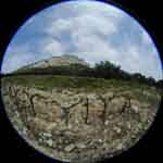 enough if you don't use a tripod The Coolpix must be used in manual mode with AE/BL lock to avoid discrepancies between the photos. Even with that precaution there may still be exposure differences that must be corrected (if anyone has a good explanation on this, please keep me informed !). You may or may not use the special lens/fisheye setup of the Coolpix. If you use that setting, the focus is set to infinity, and even with the great depth of field of the fisheye you may get not so sharp images when shooting short range (indoor) panoramas. On the other hand, if you don't you will have to remember to zoom out in the widest position and disable the flash. Take care too to the exposure of the first frame that will be used for the entire panorama - especially outdoor panos where the bright sky counts for half of the photos gets easily under-exposed. The spot metering (automatic when selecting fisheye lens in the menu) may be a good solution. You may also take a photo without the fisheye aiming at the "main subject" of your panorama to lock AE/BL on the right exposure. Here are the three photos I shot in a vineyard near Montpellier (France) that will be assembled. Click on the thumbnails to get the full resolution pictures (heavily compressed, 100 K each)